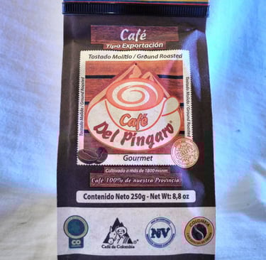 Café del Píngaro es un café 100 % colombiano, cultivado en la región del Guavio, Cundinamarca, a más de 1.800 metros de altitud. Cada grano es recolectado a mano y procesado con métodos tradicionales que respetan la naturaleza y exaltan la riqueza del café de montaña.
